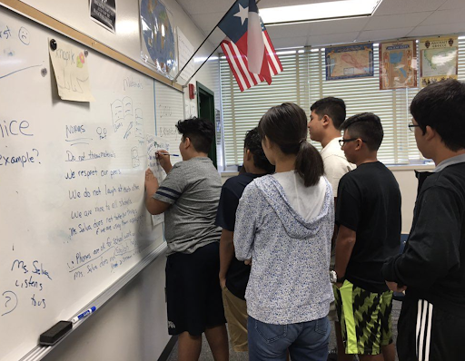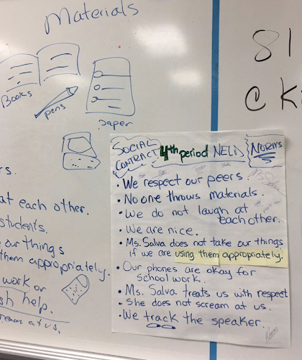 | Class discussions happened in small groups with large group share-outs. The contract was developed on the board after consensus, and we signed the contract. | Students will add their thoughts on the Flipgrid for initial input. The contract will be developed digitally in a synchronous meeting (in-person or online) from student Flipgrid input to reach consensus. Use another round of Flipgrid responses to document everyone’s agreement. |