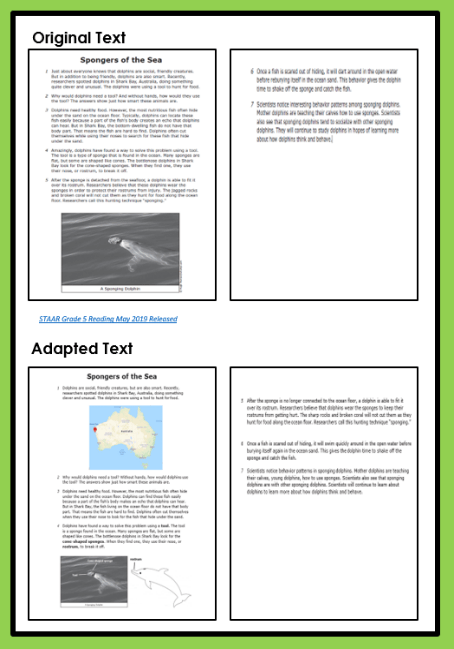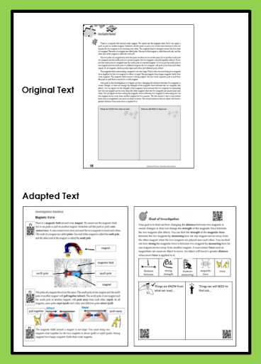 Before you begin adapting a specific text or resource, you must determine what the goal of reading or using the text is. Are you using the text for students to acquire knowledge about a specific concept or topic? Or are you reviewing the text features to analyze the text for a specific purpose? The goal is really driven by the standards you are teaching, and how you adapt the text will vary based on a variety of factors: